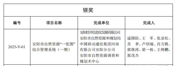 近日,2025河南省地理信息產(chǎn)業(yè)優(yōu)秀工程評(píng)選結(jié)果通報(bào)。由安陽(yáng)經(jīng)開(kāi)信息化發(fā)展有限公司聯(lián)合安陽(yáng)市自然資源和規(guī)劃局、中國(guó)移動(dòng)通信集團(tuán)河南有限公司安陽(yáng)分公司共同申報(bào)的“安陽(yáng)市自然資源‘一張圖’綜合管理系統(tǒng)(一期)項(xiàng)目”從全省申報(bào)項(xiàng)目中脫穎而出,成功斬獲銀獎(jiǎng)。