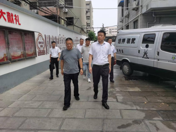 8月15日,安陽市金融機(jī)構(gòu)第九輪安全評估組一行5人在組長王剛帶領(lǐng)下,蒞臨洹河保安公司開展安全評估工作。公司副總經(jīng)理李樞林及相關(guān)人員陪同檢查。
